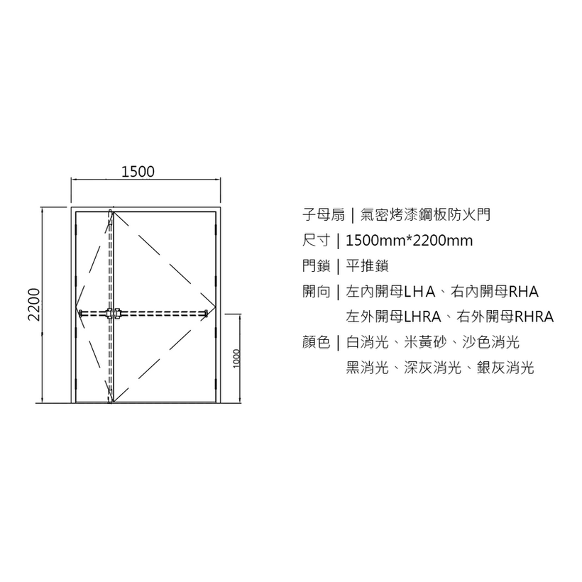 子母扇|1500mm*2200mm|氣密烤漆鋼板防火門|FD-U-150-220